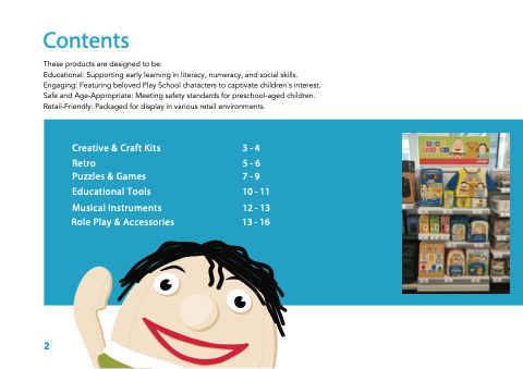 Educational: Supporting early learning in literacy, numeracy, and social skills. Engaging: Featuring beloved Play School characters to captivate children's interest. Safe and Age-Appropriate: Meeting safety standards for preschool-aged children. Retail-Friendly: Packaged for display in various retail environments.