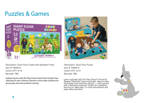 Explore big fun with the Play School Giant Floor Puzzle! Over- sized pieces and a vibrant character scene make it perfect for group play and early problem-solving.