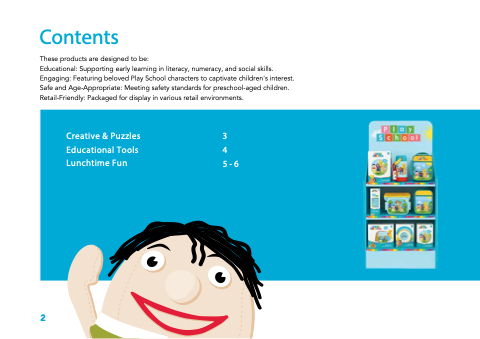 Educational: Supporting early learning in literacy, numeracy, and social skills. Engaging: Featuring beloved Play School characters to captivate children's interest. Safe and Age-Appropriate: Meeting safety standards for preschool-aged children. Retail-Friendly: Packaged for display in various retail environments.