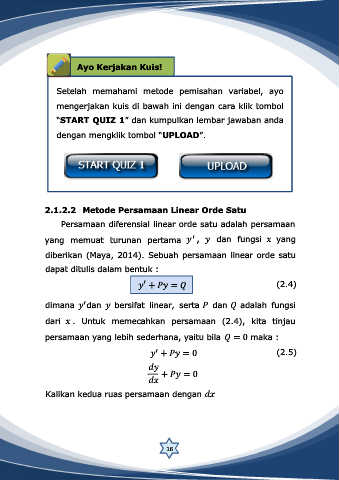 diberikan (Maya, 2014). Sebuah persamaan linear orde satu