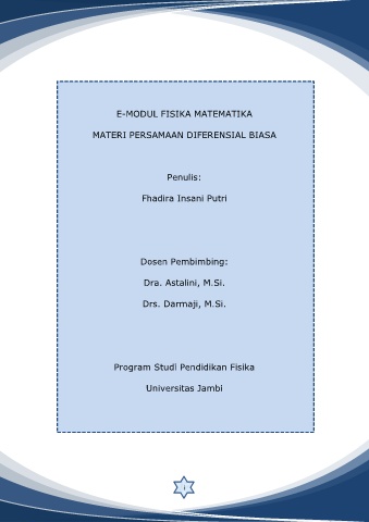E-MODUL FISIKA MATEMATIKA MATERI PERSAMAAN DIFERENSIAL BIASA Penulis: Fhadira Insani Putri Dosen Pembimbing: Dra. Astalini, M.Si. Drs. Darmaji, M.Si. Program Studi Pendidikan Fisika Universitas Jambi i