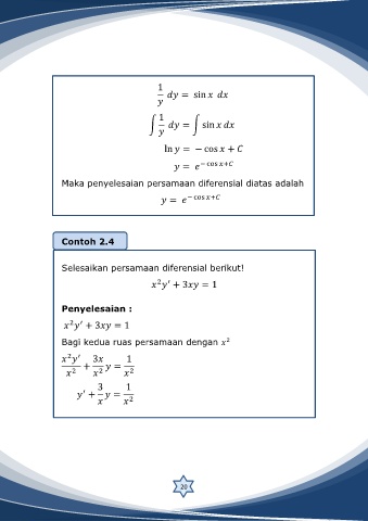 ∫ ∫ Maka penyelesaian persamaan diferensial diatas adalah Contoh 2.4 Selesaikan persamaan diferensial berikut! Penyelesaian : Bagi kedua ruas persamaan dengan 20