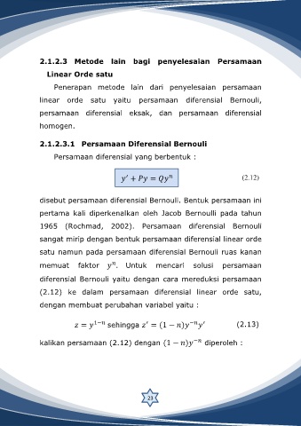 1965 (Rochmad, 2002). Persamaan diferensial Bernouli