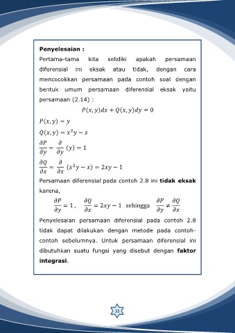 Persamaan diferensial pada contoh 2.8 ini tidak eksak