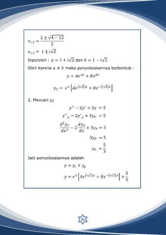√ √ Diperoleh : √ dan √ Oleh karena maka penyelesaiannya berbentuk : * ( √ ) ( √ ) + 2. Mencari Jadi penyelesaiannya adalah * ( √ ) ( √ ) + 51