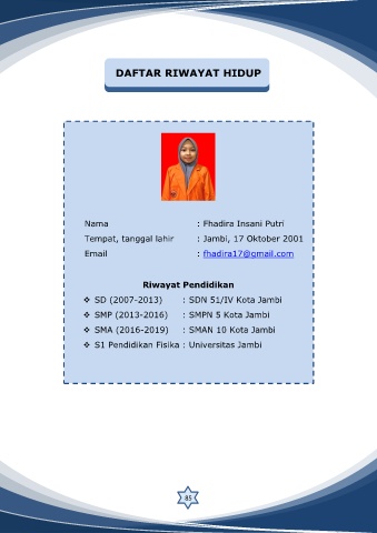 Tempat, tanggal lahir : Jambi, 17 Oktober 2001