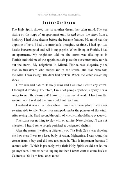 The Holy Spirit showed me, in another dream, her calm mind. She was