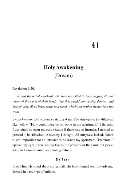 opened my eyes. There was no fear in the presence of the Lord, but peace,