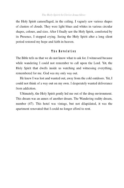 shapes, colours, and sizes. After I finally saw the Holy Spirit, comforted by