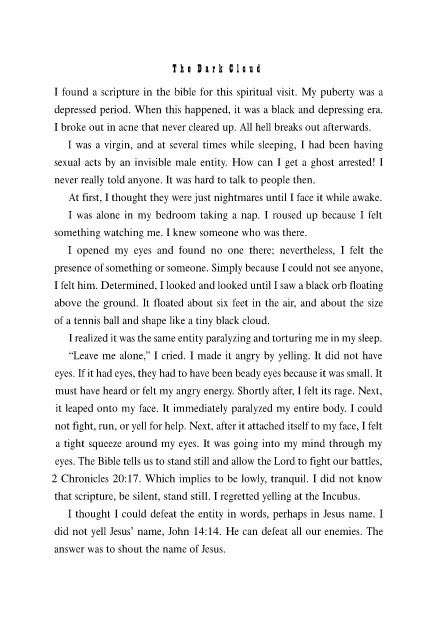 I thought I could defeat the entity in words, perhaps in Jesus name. I