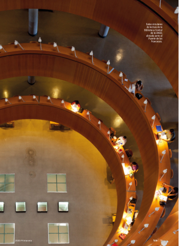 2020 Primavera bia 79 Salas circulares de lectura de la Biblioteca Central de la UNED, ubicada junto al Puente de los Franceses.