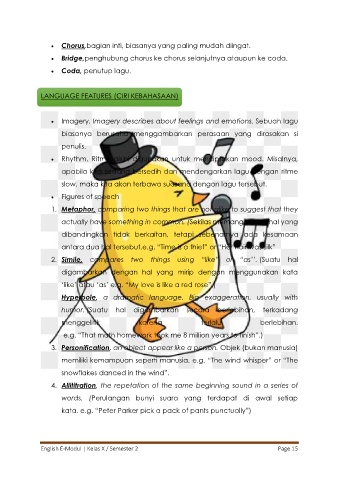 • Imagery. Imagery describes about feelings and emotions. Sebuah lagu