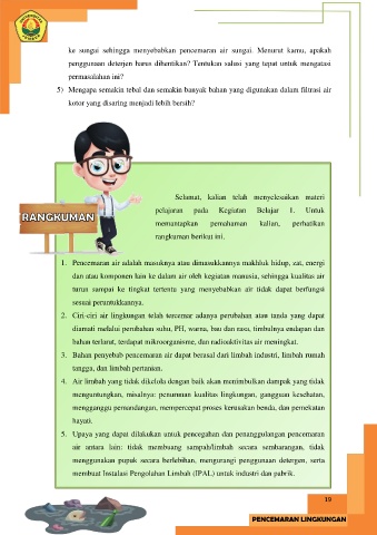 ke sungai sehingga menyebabkan pencemaran air sungai. Menurut kamu, apakah