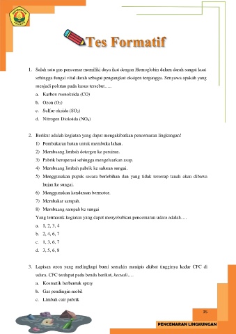 1. Salah satu gas pencemar memiliki daya ikat dengan Hemoglobin dalam darah sangat kuat