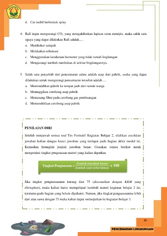 5. Salah satu penyebab dari pencemaran udara adalah asap dari pabrik, usaha yang dapat