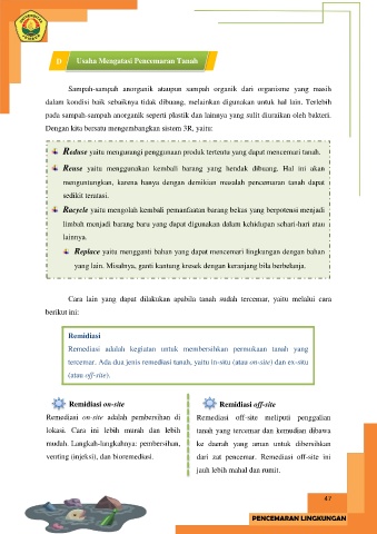 Cara lain yang dapat dilakukan apabila tanah sudah tercemar, yaitu melalui cara