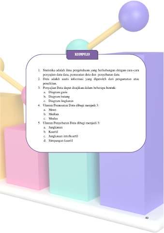 penyajian data data, pemusatan data dan penyebaran data.