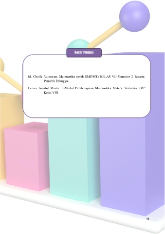 Daftar Pustaka M. Cholik Adinawan. Matematika untuk SMP/MTs KELAS VII Semester 2. Jakarta: Penerbit Erlangga. Fanisa Ismatul Maula. E-Modul Pembelajaran Matematika Materi: Statistika SMP Kelas VIII 43