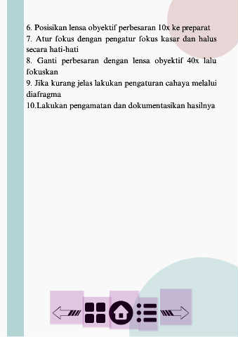 6. Posisikan lensa obyektif perbesaran 10x ke preparat