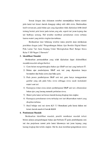 5) Materi pola lantai tari kreasi daerah kurang lengkap dan singkat.