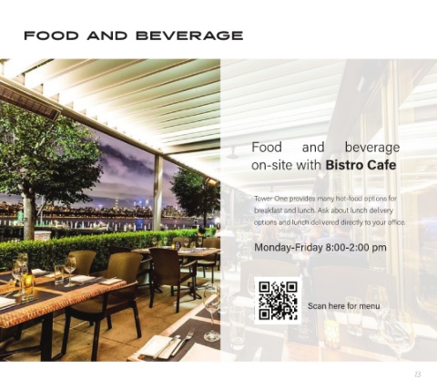 Food and beverage on-site with Bistro Cafe Monday-Friday 8:00-2:00 pm Scan here for menu 13