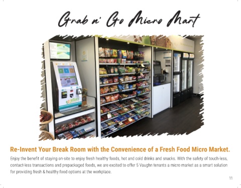 contact-less transactions and prepackaged foods, we are excited to offer 5 Vaughn tenants a micro market as a smart solution