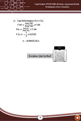 c) Laju berkurangnya O2 (-r O2) = = 2 2 3 1 = − 0,0125 2 2 = −0,00625 / Kerjakan Quiz berikut! 9