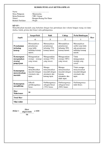 Menyelesaikan masalah yang berkaitan dengan luas permukaan dan volume bangun ruang sisi datar