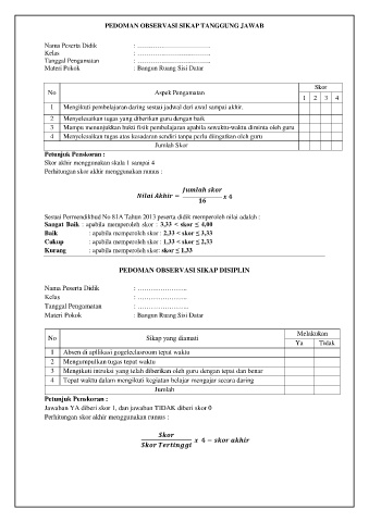 PEDOMAN OBSERVASI SIKAP DISIPLIN
