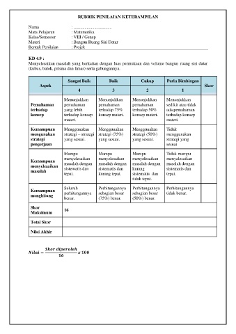 Menyelesaikan masalah yang berkaitan dengan luas permukaan dan volume bangun ruang sisi datar