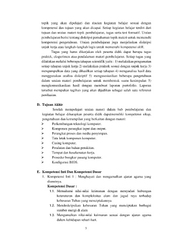 kompetensi dan tujuan yang akan dicapai. Setiap kegiatan belajar terdiri dari
