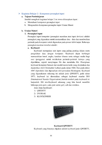 ➢ Kegiatan Belajar 2 : Komponen perangkat input