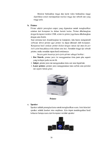 cetakan dari komputer ke dalam bentuk kertas. Printer dihubungkan
