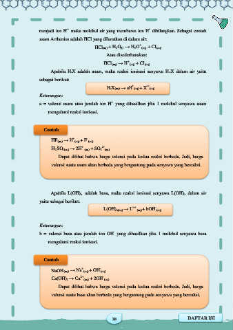 menjadi ion H maka molekul air yang membawa ion H dihilangkan. Sebagai contoh