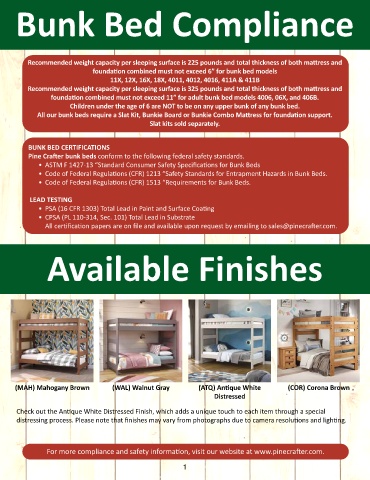 Pine Crafter bunk beds conform to the following federal safety standards.