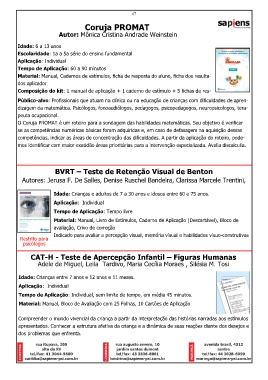 Composição do kit: 1 manual de aplicação + 1 caderno de estímulo + 5 fichas de res-