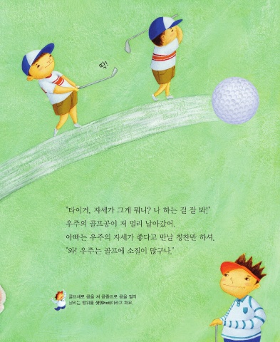 딱! "타이거, 자세가 그게 뭐니? 나 하는 걸 잘 봐!" 우주의 골프공이 저 멀리 날아갔어. 아빠는 우주의 자세가 좋다고 만날 칭찬만 하셔. "와! 우주는 골프에 소질이 많구나." 골프채로 공을 쳐 공중으로 공을 멀리 날리는 행위를 샷(Shot)이라고 해요.