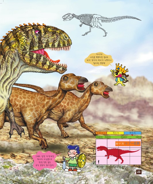 아니야! 나만큼 똑똑하면 몰라도 뇌가 작아서 머리가 나쁘다니 왕으로는 부족해. 䏬⢰㢨㙸㏘ὤ 㪄⢰ὤ ⵥ㙹ὤ র ݅ ֙ র ݅ ֙ র ݅ ֙ ݅ ֙ ⯬ⱨ᷀G㚱G^¥_䋘 그래도 살던 지역에선 7.5m 최고의 사냥꾼으로 맞설 동물 없는 육식 공룡의 왕이었지. 㚱13~15m 23 23 KG2_��_01�.indd 23 11. 12. 9. �� 11:55