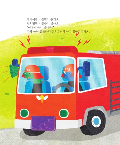 에에에엥 비상벨이 울려요. 번쩍번쩍 비상등이 빛나요. “어디에 불이 났나봐!” 깜짝 놀란 울트라와 유오유오의 눈이 휘둥그레져요.