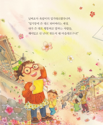 날씨조차 옥달이의 일기대로였다니까. "일기장에 쓴 대로 되어버리는 세상. 내가 쓴 대로 행동하고 말하는 사람들, 재미있고 신 난다! 뭐든지 내 마음대로구나!"