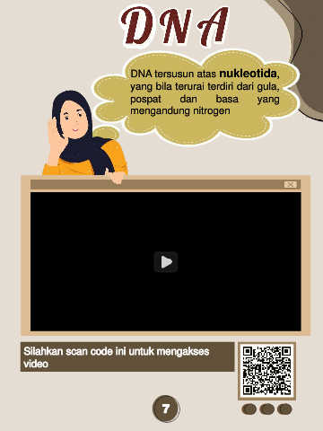 DNA tersusun atas nukleotida, yang bila terurai terdiri dari gula, pospat dan basa yang mengandung nitrogen Silahkan scan code ini untuk mengakses video 7