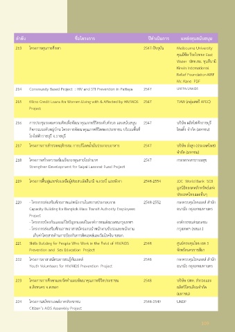 ลำ�ดับ ชื่อโครงก�ร ปีดำ�เนินก�ร แหล่งทุนสนับสนุน