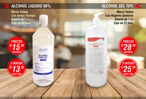 ALCOHOL LIQUIDO 96% ALCOHOL GEL 70%