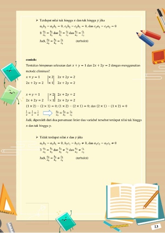 Jadi, diperoleh dari dua persamaan linier dua variabel tersebut terdapat nilai tak hingga
