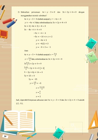 Jadi, diperoleh himpunan selesaian dari 4 + − 3 = 0 dan 3 + 2 + 4 = 0 adalah