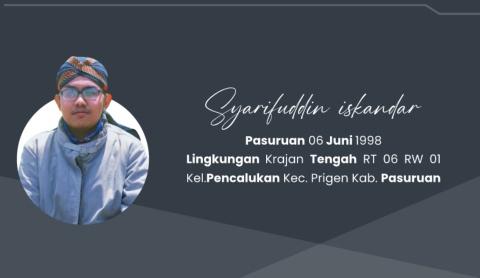 Syarifuddin iskandar Pasuruan 06 Juni 1998 Lingkungan Krajan Tengah RT 06 RW 01 Kel.Pencalukan Kec. Prigen Kab. Pasuruan