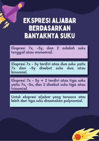 Ekspresi 7x, -5y, dan 2 adalah suku