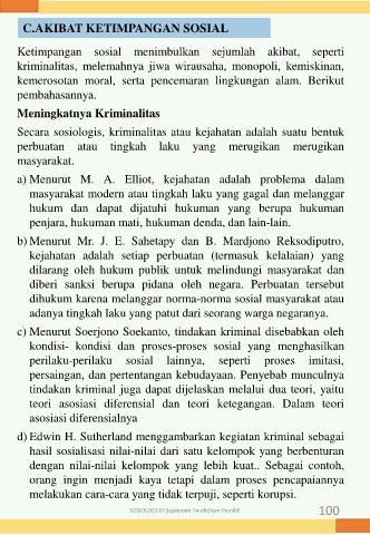 c) Menurut Soerjono Soekanto, tindakan kriminal disebabkan oleh