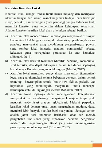 Adapun karakter kearifan lokal akan dijelaskan sebagai berikut.