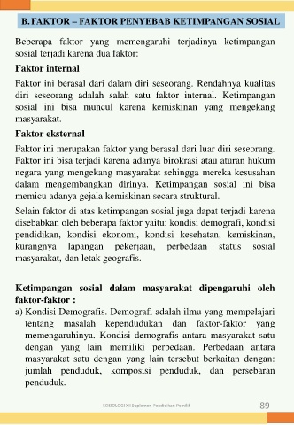 B.FAKTOR – FAKTOR PENYEBAB KETIMPANGAN SOSIAL